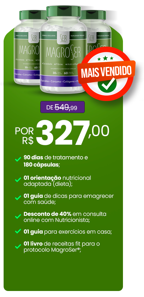 MagroSer® possui uma ação emagrecedora, atuando na queima de gordura, desintoxicação do corpo, auxiliando na redução do inchaço do seu corpo, aumentando sua disposição e fazendo você emagrecer de forma rápida e definitiva.
